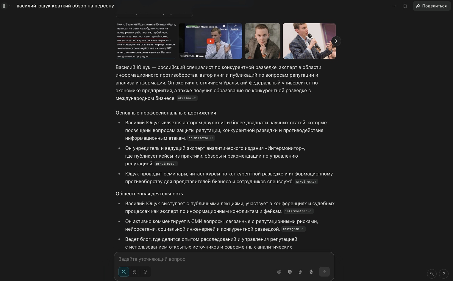 Нейросеть Перплексити сначала показывала источники, которые собирает. Их много и все по теме.